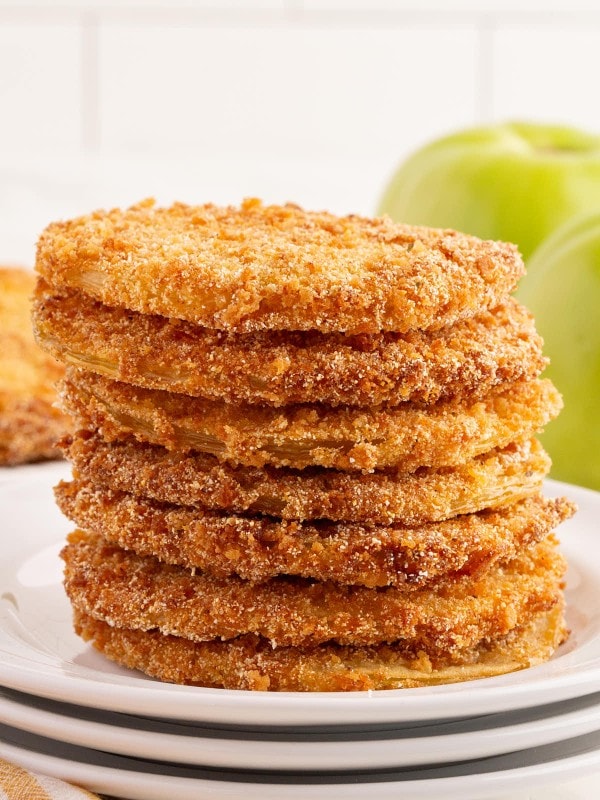 Yes, you can air fry them for a lighter option, but they won’t be as crispy as the oil-fried version. Spray the breaded tomatoes with cooking spray, air fry at 400º Fahrenheit for 10-12 minutes, flipping halfway, until golden and crisp.