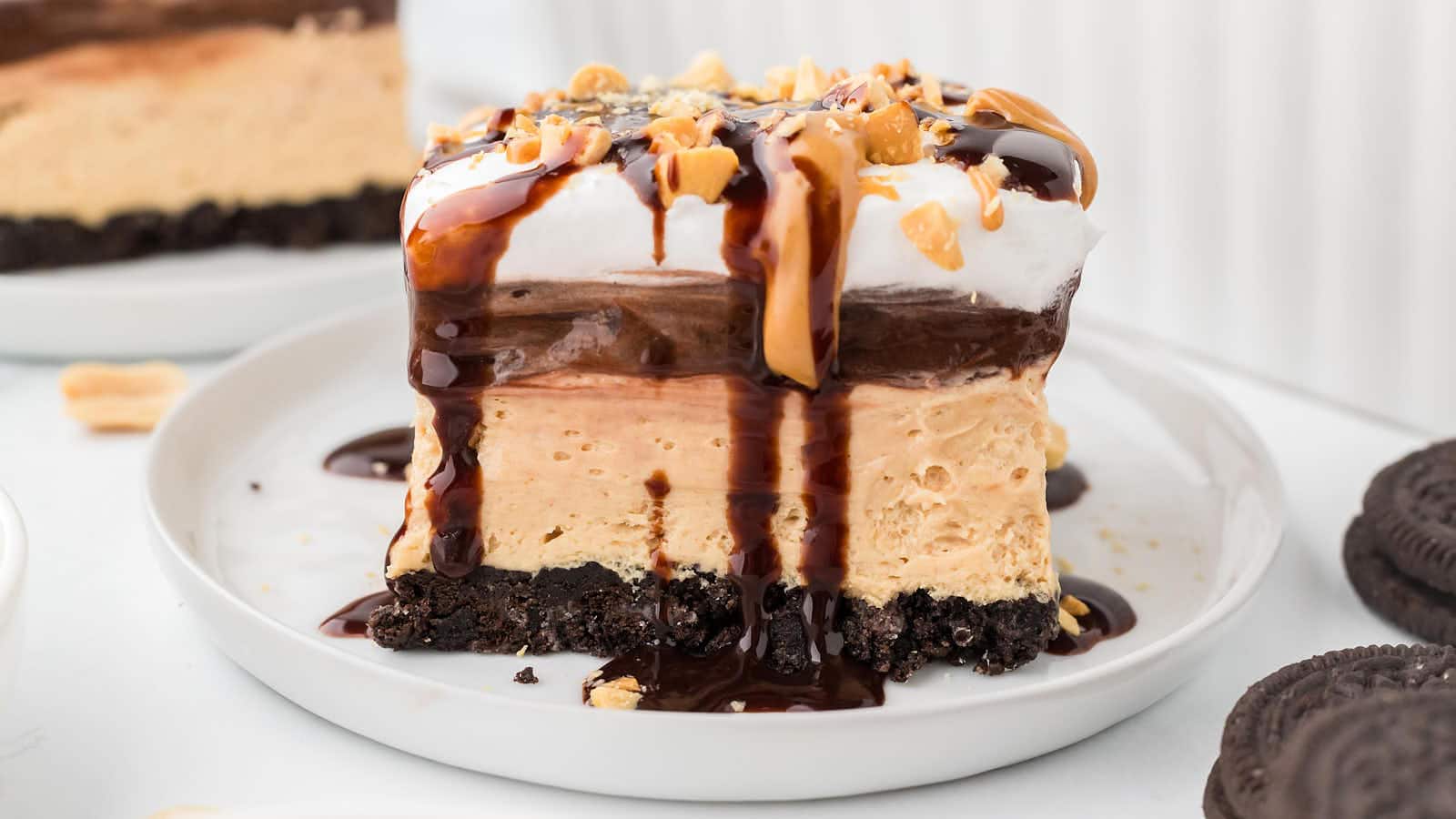 With creamy layers of peanut butter and chocolate pudding, plus a crunchy Oreo base, this dessert has it all.